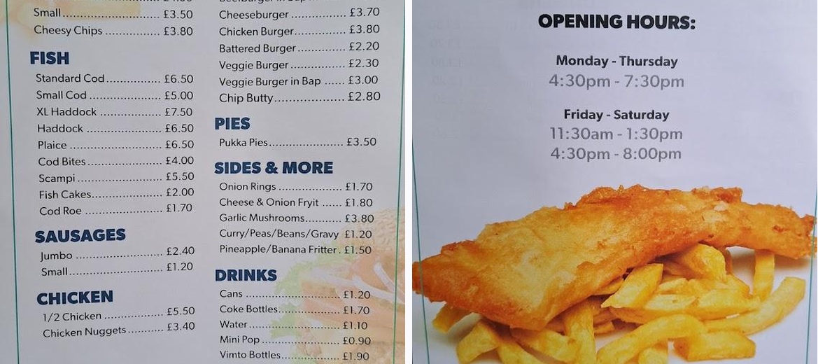 You will not stumble across this place but it is well worth a specific trip as I made from a local campsite. It was busy on a Saturday night (as a good place should be!) so there was a little wait, but it was worth it for one of the best fish and chips I’ve ever had - the chips were hands down THE BEST. Lovely service from the ladies behind the counter and I thought it was also very good value.